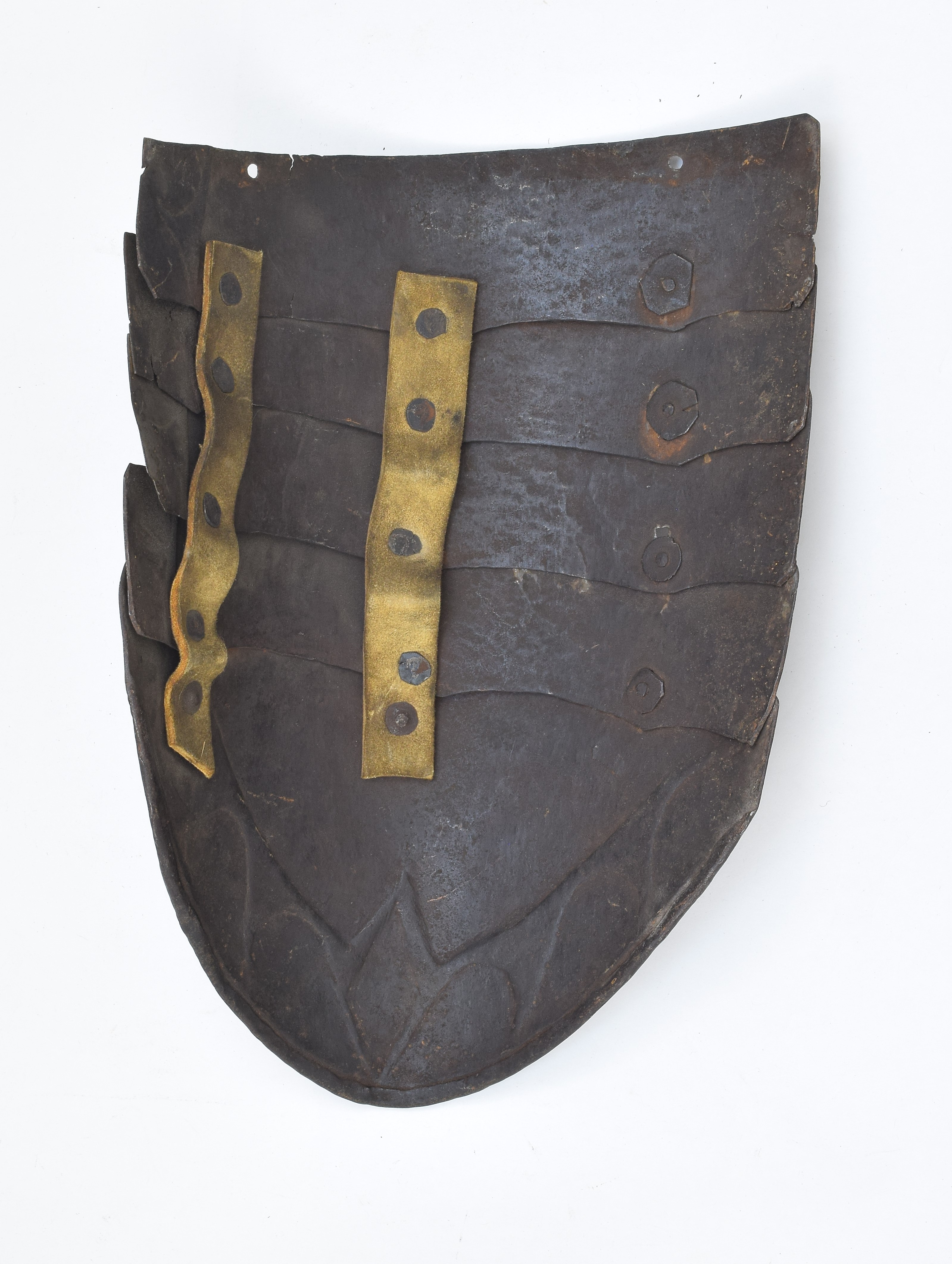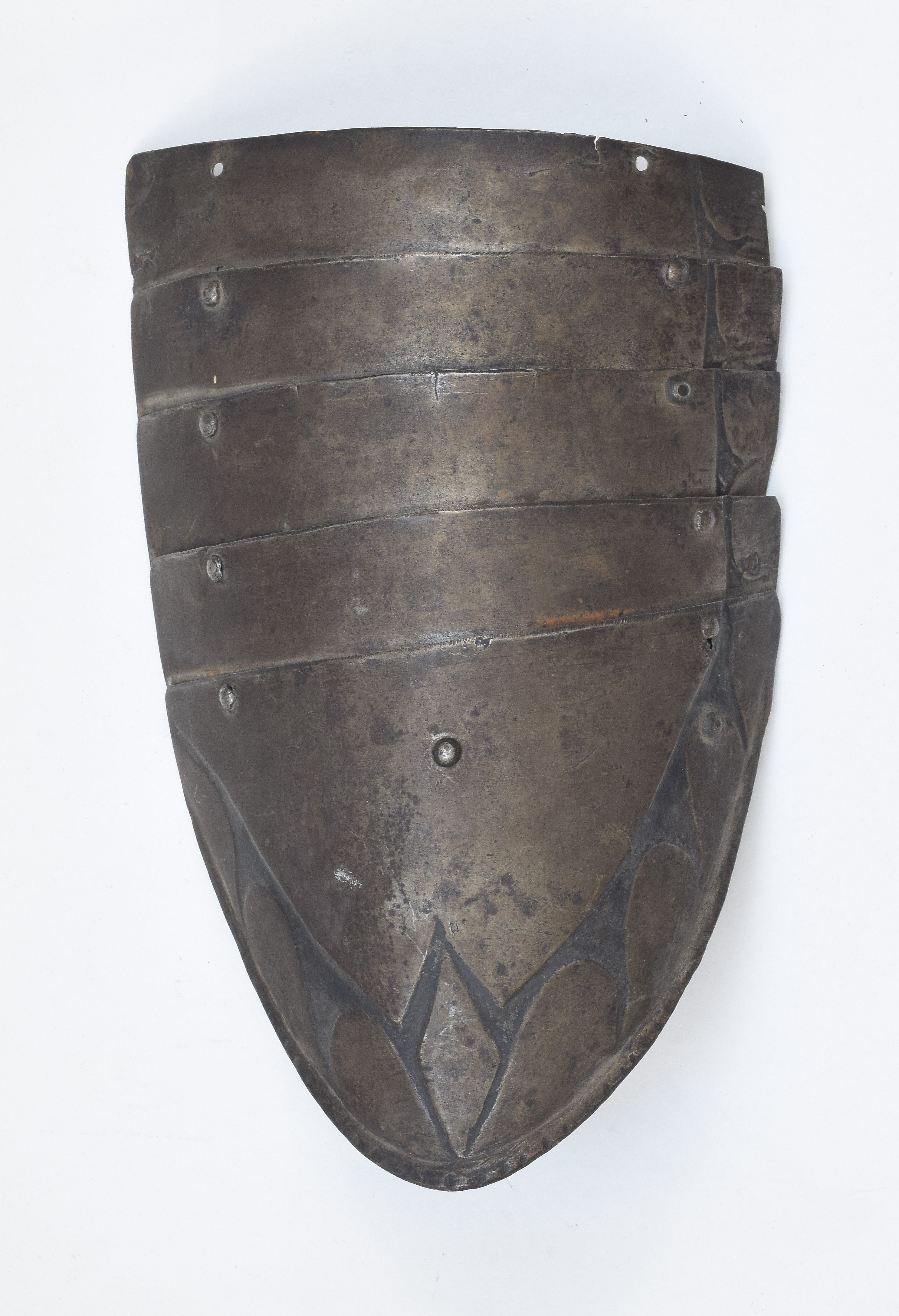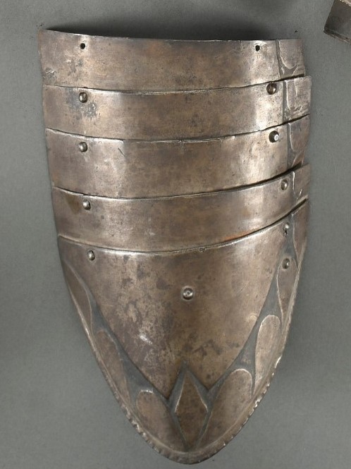 For the right leg. 5 plates of a tasset. Nice black and white decoration in the form of waves wiht a central diamond in the border.