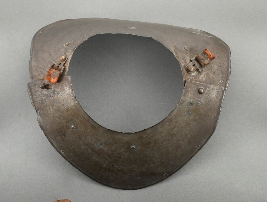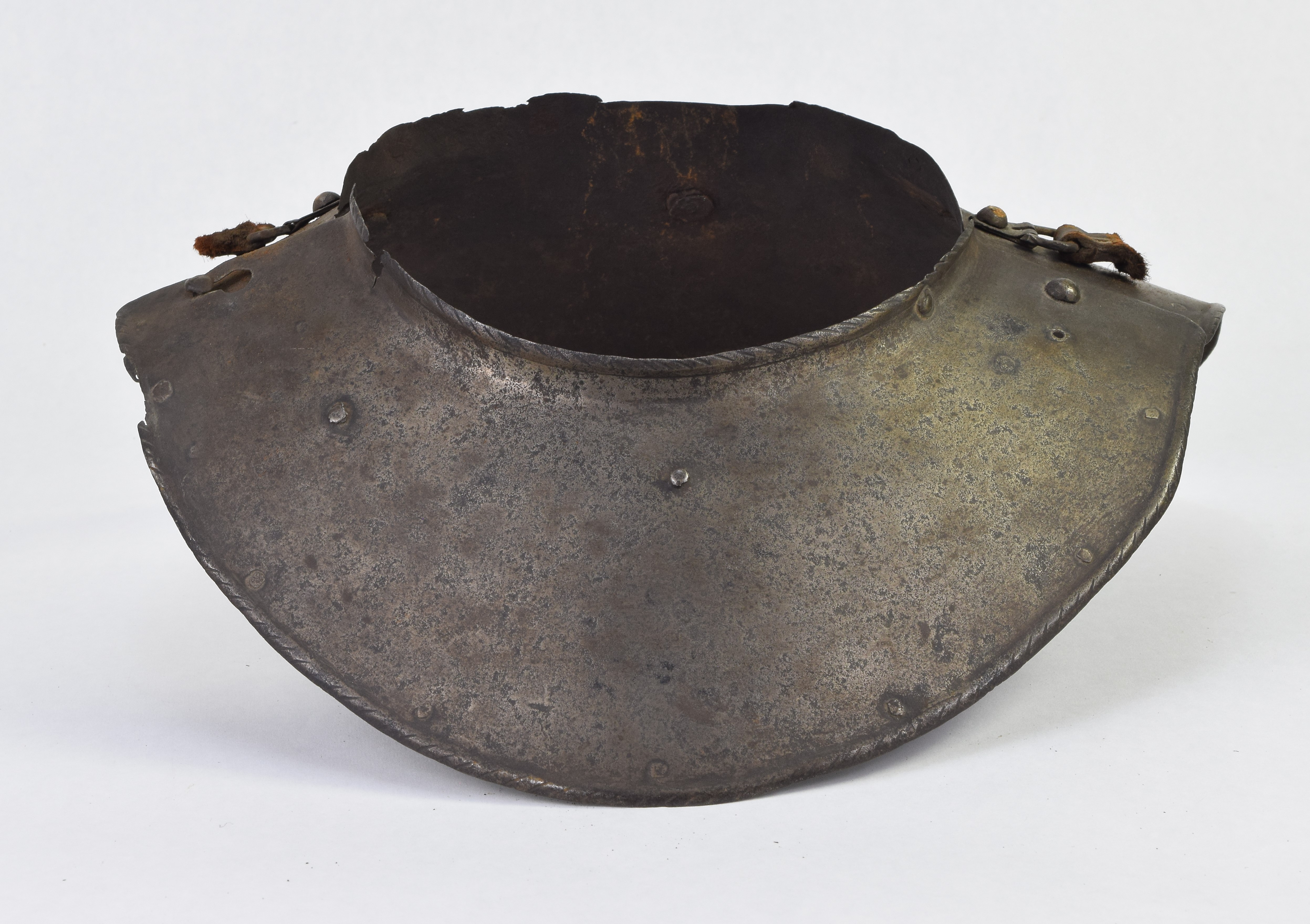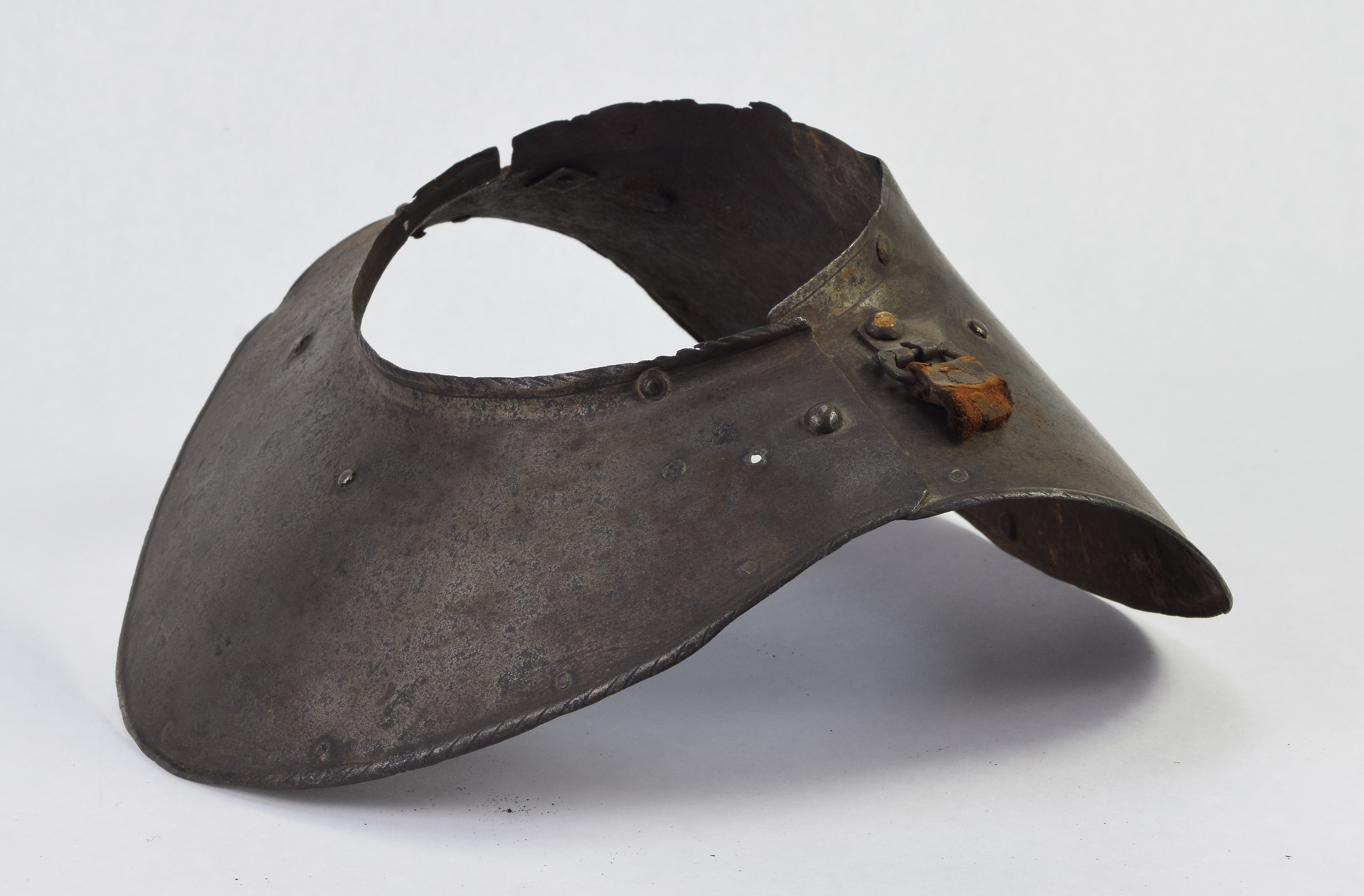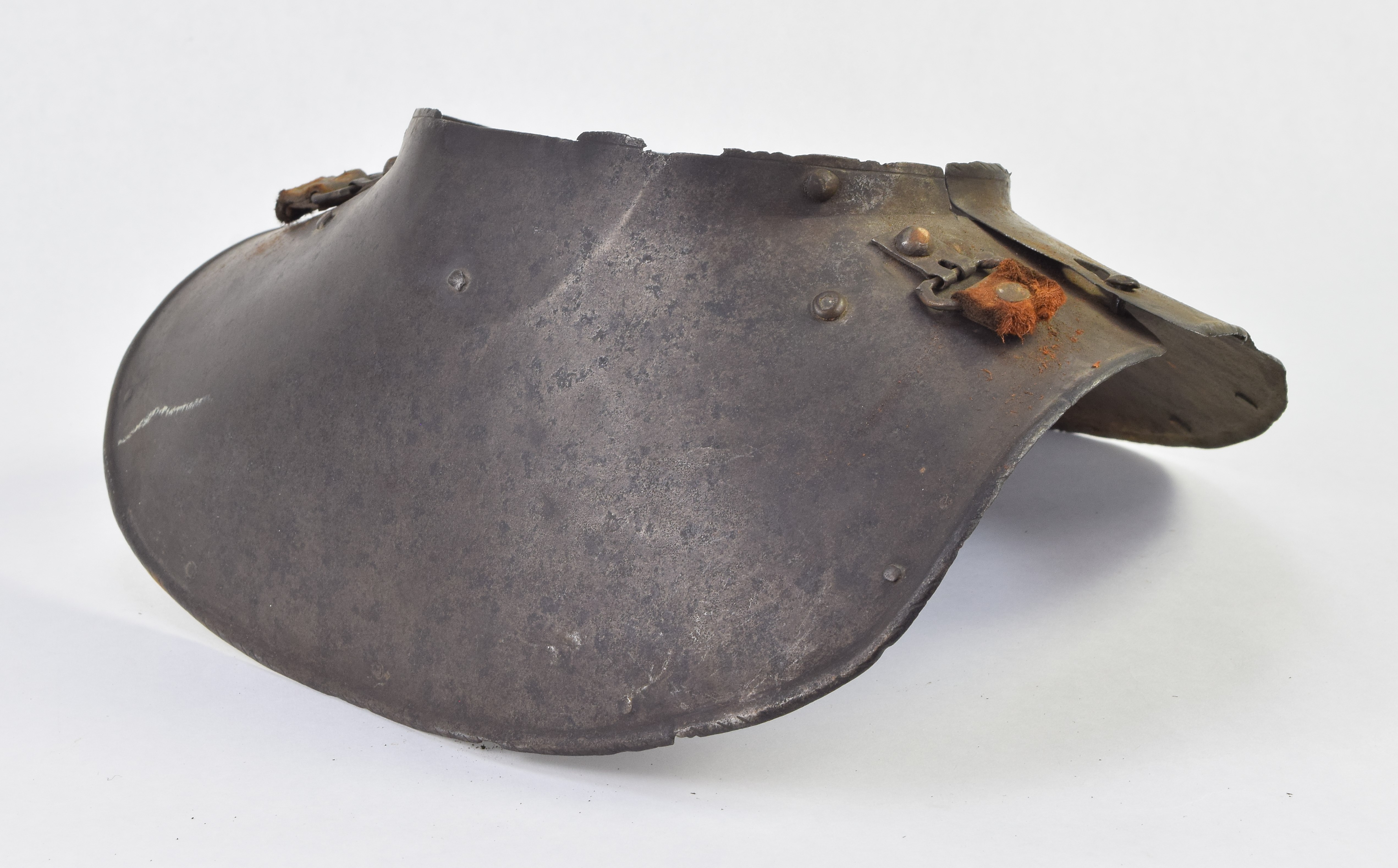 Italian. One piece front and back. Neck raised to form integral collar. Neck lames lost. Bump (half rolls) at the neck and outer edge. The half rolls are roped. Some losses.