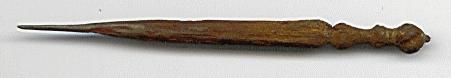 formed in one piece with turned detail handle terminated by a writhen-knot finial.