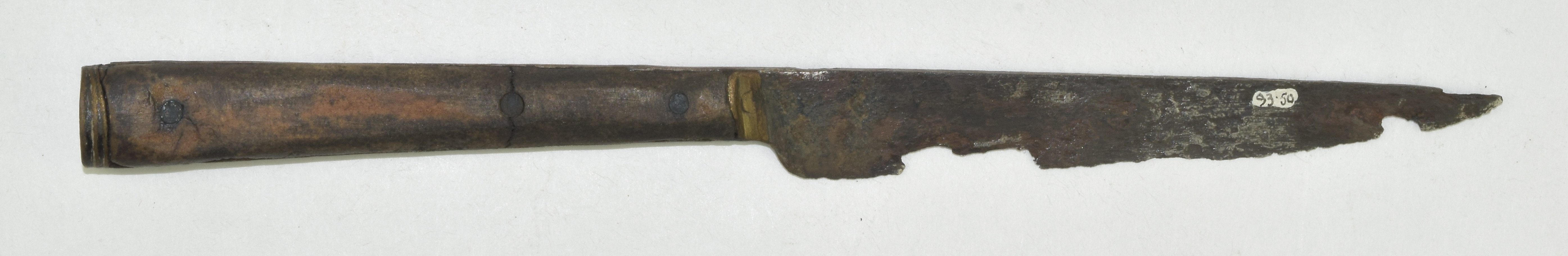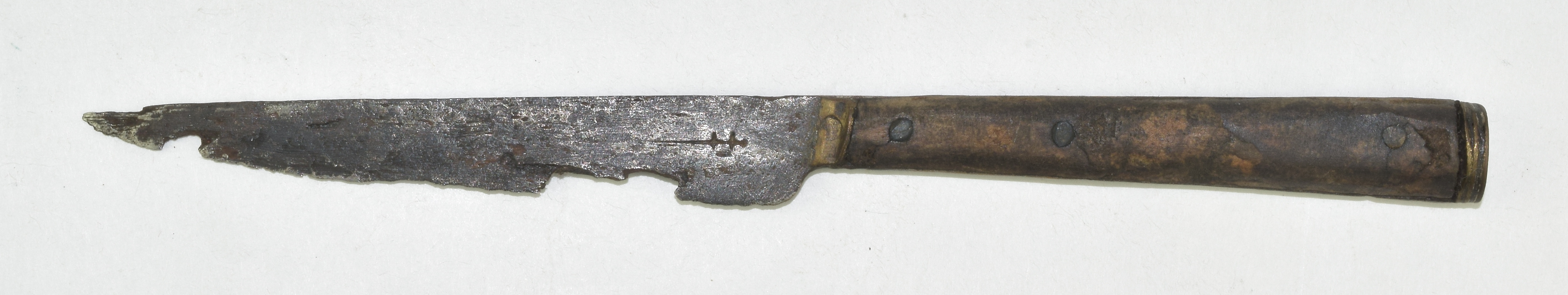 two-handed sword mark, wooden scales and tang plate with washers, c.1400 From the Thames.