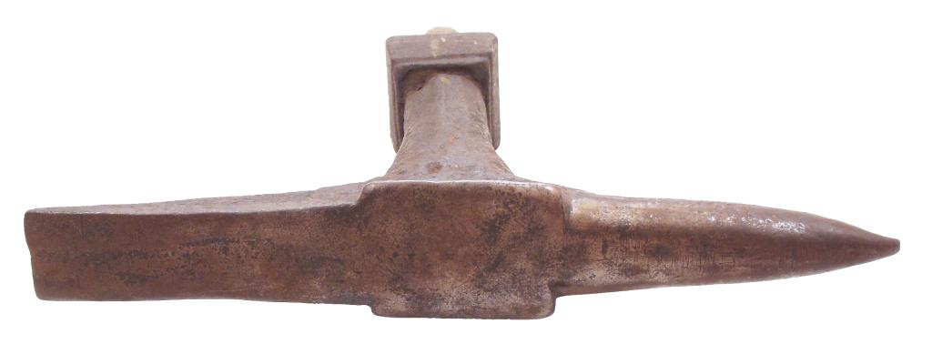Measurements: 19 in. long and 18 1/4 in. tall. Face 4 1/2 in. long, 3 1/4 in. wide. Flat horn 7 in. long, 2 3/8 wide at the face tapering to 2 1/8 at the end. Round horn 7 1/2 in. long.